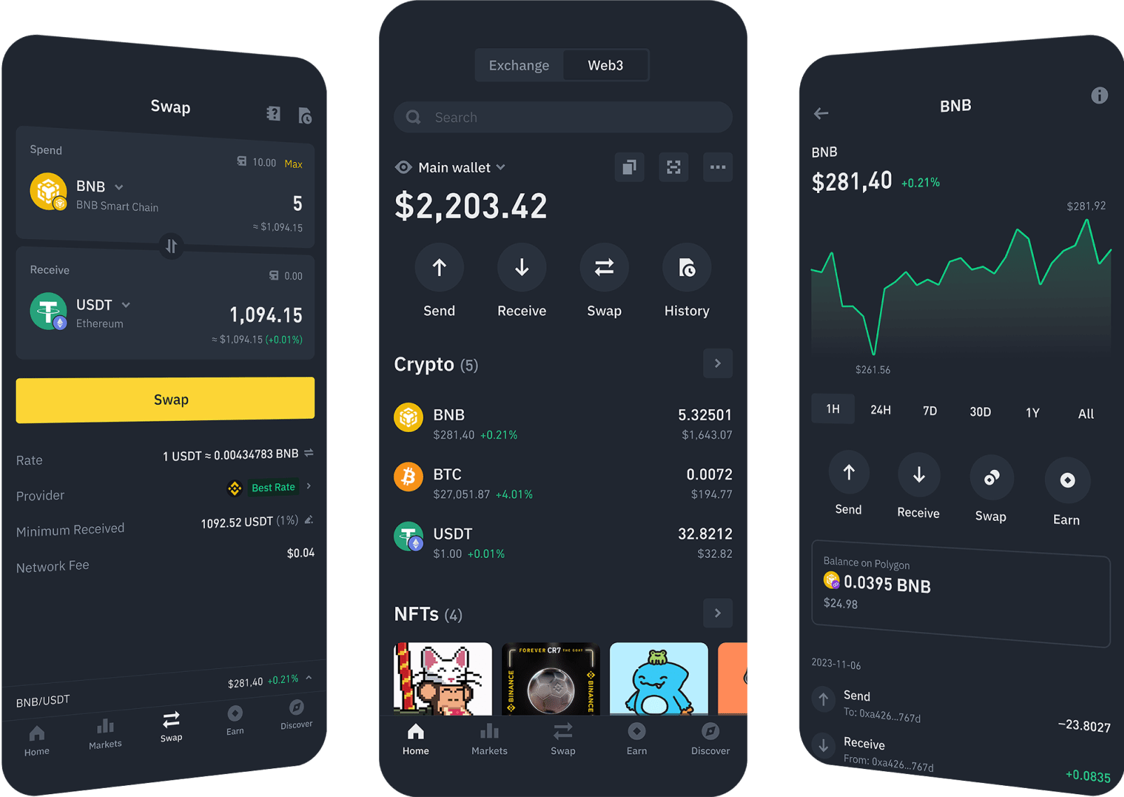 Powered by Binance Bridge and other DEXs, trade thousands of tokens across various networks. Get the best prices thanks to deep liquidity and low slippage.